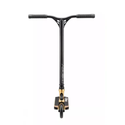Le deck 58 x 17 cm en aluminium 6061-T6 s’associe à une fourche et un collier du même alliage, à un angle de direction de 83° et à un jeu de direction intégré pour un pilotage précis et réactif. Les deck-ends intégrés prolongent la durée de vie en grind et conservent une glisse régulière.